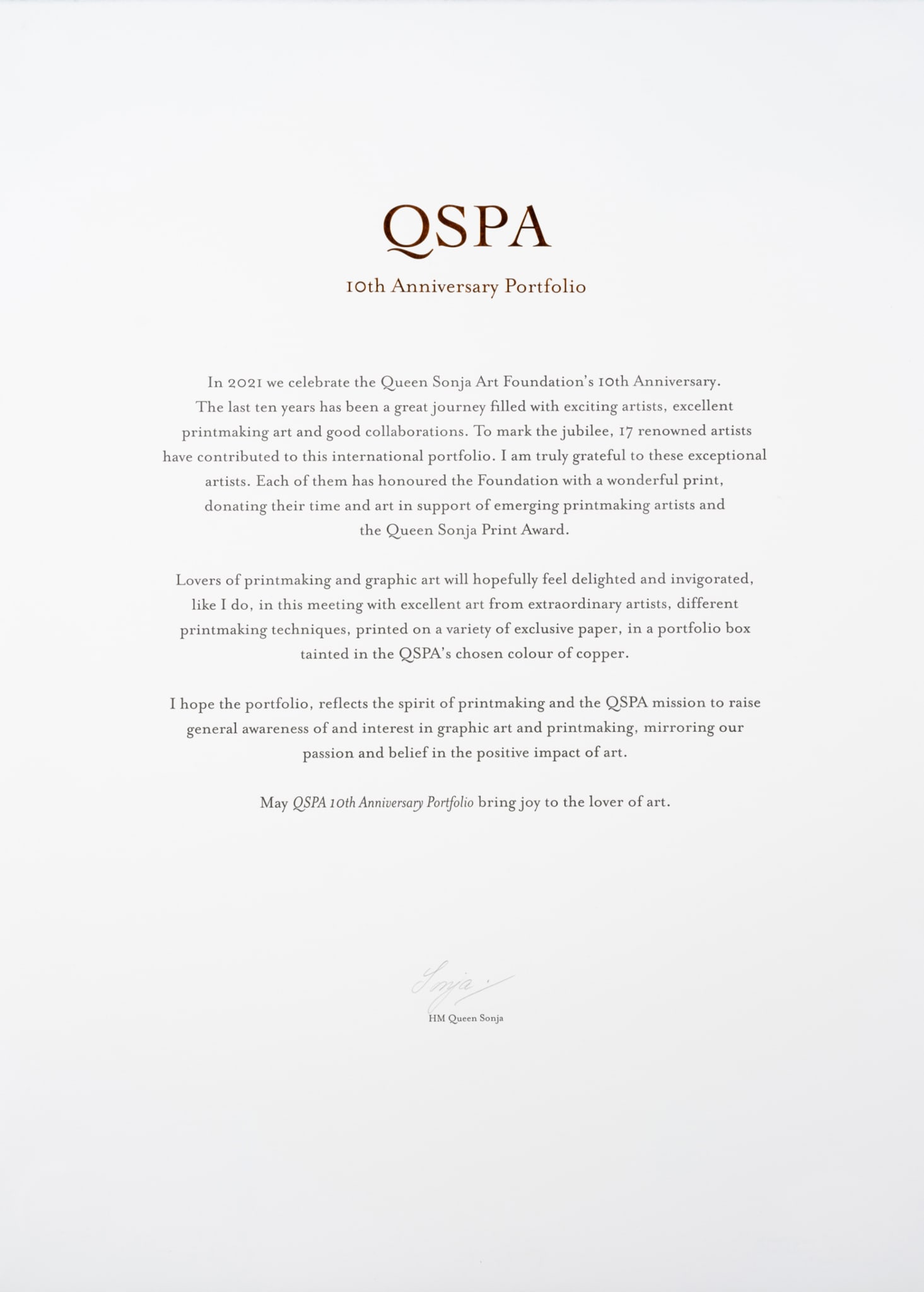 Ten portfolios in this edition of thirty are part of an extended version, which include three prints by HM Queen Sonja.